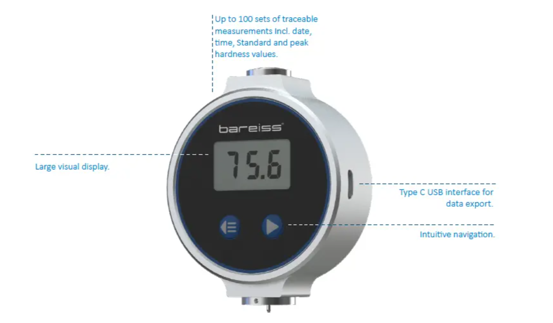 HP Digital shoremetre, bir durometre için düşünülebilecek her türlü dijital kolaylığı sunar. Sınır aşıldığında verileri dışa aktarmak için bir Type-C USB arayüzü ile 100'e kadar ölçüm verisi setini depolayabilir ve görüntüleyebilir. Ek olarak, ölçüm süresini seçme, tepe değeri ile standart değer arasında geçiş yapma ve ölçüm tamamlandığında görsel bir gösterge sağlama gibi özellikler içerir.